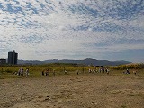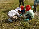 今日、ゆり組さくら組の子どもたちは、電車やトロッコに乗って亀岡に出かけました。トロッコでは、保津川下りの船に手を振ったり、サルがいないか見たりしながら楽しみました。亀岡に着くと広い草原が広がっており、子どもたちは、虫取り網を片手にバッタやカマキリ、コオロギ、テントウムシなどを夢中になってつかまえたり、原っぱを走ったりして楽しみましたよ。青空の下で、お弁当も食べました。子どもたちに、今日のお話を聞いてみてくださいね。