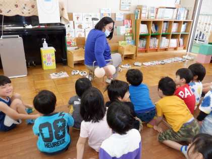 今回は,「男児」「女児」によって異なる注意点や拭き方について模型を使い実演し、知らせました。