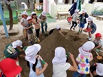 5歳児ゆり組の子どもたちは、園庭の砂場で大きな山をつくったり、総合遊具で遊んだり、西院小学校の第2グラウンドで思いっきり走って鬼ごっこをしたりして楽しみました。