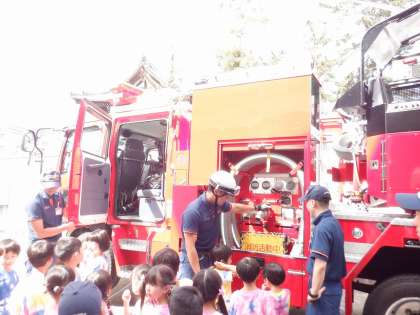消防士さんの素早い着替えを見せていただいたり,はしご車に乗せてもらったり,いろいろなお話も聞かせてくださいました。