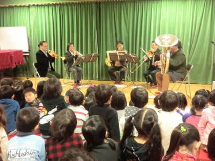 開智幼稚園のお友達と一緒に,京都市交響楽団金管五重奏の演奏を聴きました。