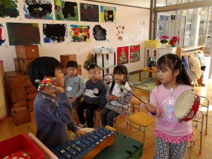今日から12月。寒くなってきましたが,子どもたちは元気に,総合遊具で体を動かして遊んだり,高鬼をしたり,砂場でアイスクリーム屋さんをしたり,クリスマスのコンサートをしたりして楽しみました。友達との関わりが広がっています。また,今日は新しい友達を迎え,さくら組は13名になりました。うれしいね。一緒にいっぱい遊ぼうね!