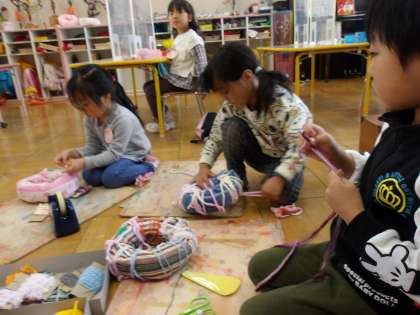 今日は,サンタさんのお話の絵をパスでかきながら,サンタさんに思いを寄せました。子どもたちのかくサンタさんはとてもやさしそうな表情です。また,ふわふわリースに毛糸を巻いて飾りつけも楽しみました。積み木の手作りステージで,クリスマスコンサートも始まっています。夢を膨らませながら楽しんでいます。。