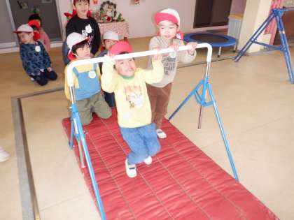 京都グレースライオンズクラブ様より、室内用の鉄棒をいただきました。組み立てると、子どもたちはとても嬉しそうにし、「やってみたい」気持ちがどんどん膨らんでいました。「前回りができるようになったよ!」と、嬉しそうに伝える姿が見られました。