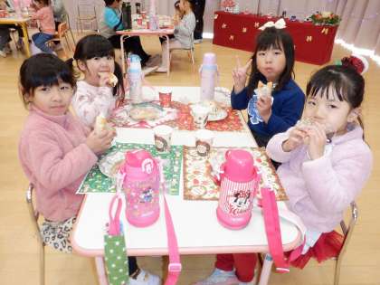 特製のうさぎパンとウインナーパン、そしてバザーを頑張ってくださった保護者の方からいただいたサンタクロースクッキーをいただきました。