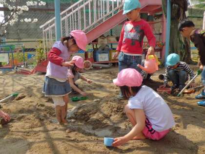 お天気がいいので,はじめは砂場で遊びましょう。