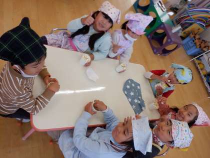 さて、お客様へのお店を閉店して、いよいよ自分たちもいただきます。「おいしい!」「最高!」と何度も何度もお代わりして心行くまで味わいました。ポップコーンパーティー大成功!子どもたち、達成感を味わってくれたことと思います。楽しかったね!