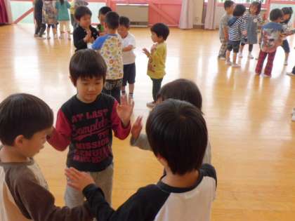 遊戯室に集まって,体操をしたり仲良し遊びをして遊ぶことがみんな大好きです。