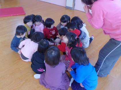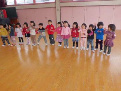 今日のいちご組(教育相談)は遊戯室で、「てぶくろ」のお話を聞いて楽しく踊りました。いちご組のみんなは大きな遊戯室でもしっかり踊ることができていました。とってもしっかりしてきましたね。生活発表会がたのしみですね。