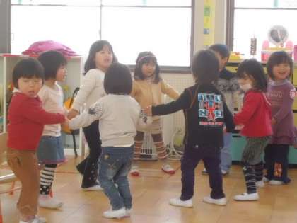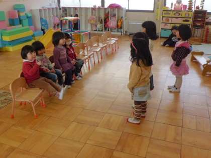 今日の教育相談いちご組(3歳児)は、保育室で歌を歌ったり,なかよし遊びをしました。「入れて!」「いいよ!」と,お話の登場人物になりきって遊んだり,「仲良くなったね」といって輪になって遊んでいます。みんなで遊ぶの楽しいね!