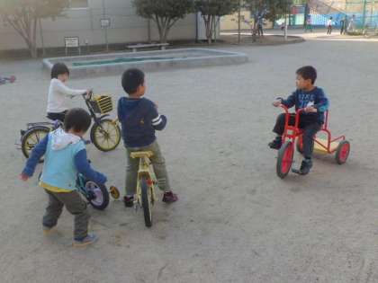 自転車遊びも楽しみました。気持ちのいい太陽が顔を出して素敵な遊びができました。