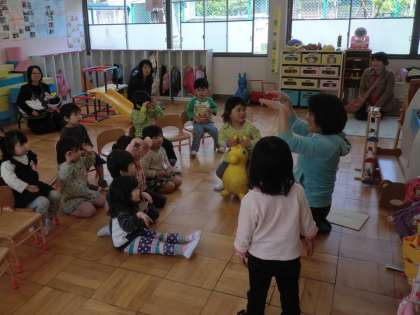 3歳児のお友達,西院幼稚園のいちご組にぜひ遊びに来てくださいね。次回は4月26日(金)です。
