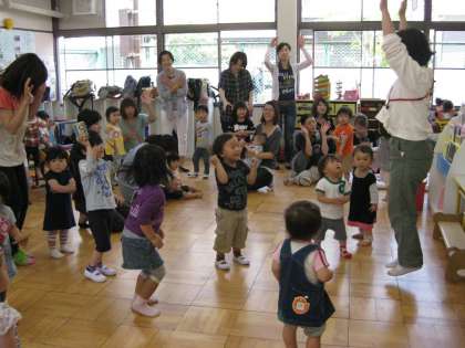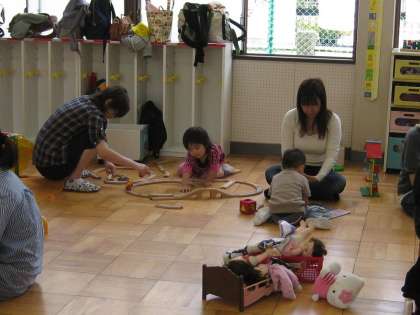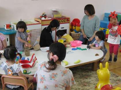 0歳から3歳を対象にしたひよこ組(教育相談)は、今日もたくさんの親子が参加しました。大好きなおもちゃで遊んだり、線路に汽車を走らせたりして楽しんでいました。どうぶつ体操では、元気いっぱい体を動かしてあそびました。5月22日(水)のひよこ組では、シール遊びをします。たくさんの参加お待ちしています。