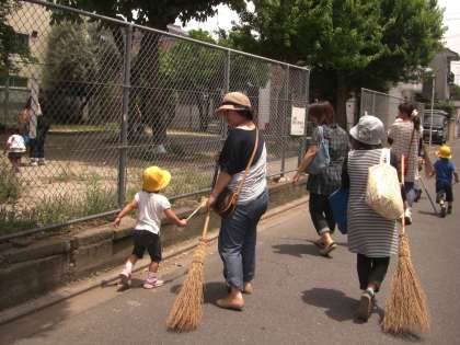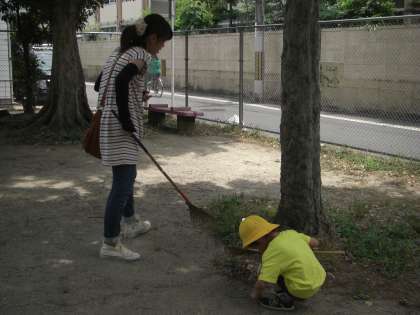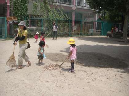 今日は,さくら組(4歳児)とその保護者で,幼稚園のお隣にある春栄公園を掃除しました。5月はゆり組(5歳児)とその保護者がお掃除をしていたので,今回はさくら組の番です。子どもたちも熊手やつまみを持ってお母さんとお掃除に行きました。いつ遊ばせてもらっている公園を感謝の気持ちをこめてきれいにすることと,地域を住みよい場所にするという思いを子どもたちも少しずつ感じていくことと思います。