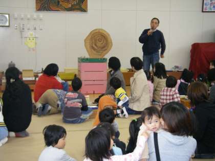 「もくじゅ」の小田先生にお世話になって,それぞれが好きな乗り物をつくることを楽しみました。木のお話も聞かせていただきました。
