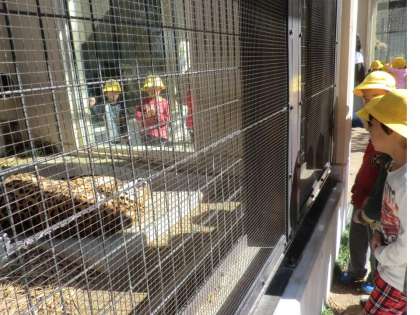 今日はとてもいいお天気で温かく園外保育日和の1日でした。新しくなってきている動物園内では,さくら組(4歳児)ゆり組(5歳児)に分かれて,キリンやフラミンゴ かば等をすぐ近くで見たり,ライオンやとらが近いところを動き回る様子を見て,ドキドキしながら写真を撮ってもらったりしました。温かな日差しの中,疏水の景色をながめながらお弁当を食べて「外でお弁当を食べるとおいしいね!」とおしゃべりしながらお弁当をたべました。往復の地下鉄の階段や坂道をしっかり歩ける子どもたちの姿がありました。
