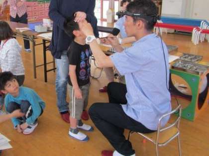 在園児,ゆり組(5歳児)さくら組(4歳児)の子どもたちは,今日,耳鼻科の先生の検診を受けました。耳,鼻,のどを見てもらいます。