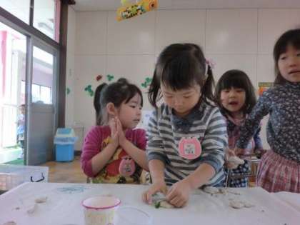 自分たちが経験したことがこうして遊びにつながっていく,子どもの世界は本当に楽しい・・・。柏餅をつくってる子どもたちの表情も本当に楽しそう。