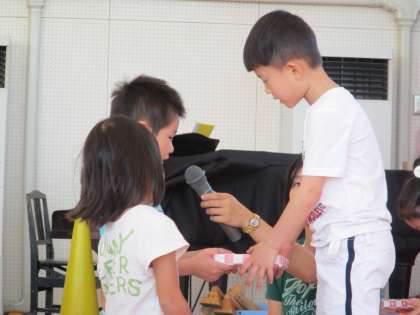8月の誕生会にお休みしていた人も,みんなに祝ってもらいました。お祝いしてもらった人はもちろん嬉しいのですが,他の人の喜びも嬉しいと思えるそんな子どもたちに育ってほしいと思います。