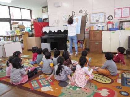 今年初めての保健指導です。ゆり組(5歳児)は,手洗いの仕方について話を聞きました。さくら組の時から毎日,手洗いはしていますが,ゆり組になって今一度,基本に戻って,ちゃんと指先や手首まで洗えているかどうか,保健の先生の話を聞いて,確認し合いました。