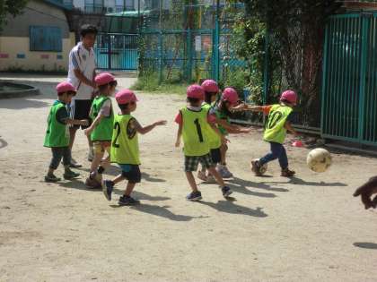 今日は暑い一日でしたが,預かり保育はサッカー体験でした。水分をちょこちょこ補給しながら,サッカーを楽しみました。