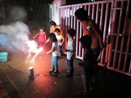 花火を経験したことのない子どもたちもいましたが,みんなわくわくしながら楽しみました。花火の色が4色に替わっていくのを楽しんでいました。