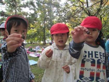 どんぐりは宝物やお母さんへのお土産になり,落ち葉はバーベキューのお肉に見立てた遊びになり・・・・子どもたちの発想は面白いですね。