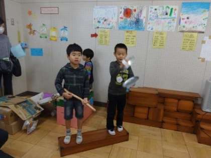 ゆり組は,お店と言っても自分たちが幼稚園大会で経験した舞台が出てきて,コンサートやダンスの披露,人形劇もありました。