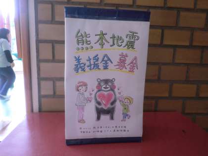 今日は,京都市幼稚園PTA連絡協議会からかわいらクマモンのイラスト付きのポスターが届きました。早速幼稚園の募金箱に貼りました。