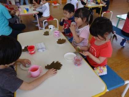 子どもの日のつどいで,鼓月さんからいただいた柏餅をみんなで食べました。とてもおいしかったです。みんな元気にすくすく育ってねと願いつつ,一緒にいただきました。