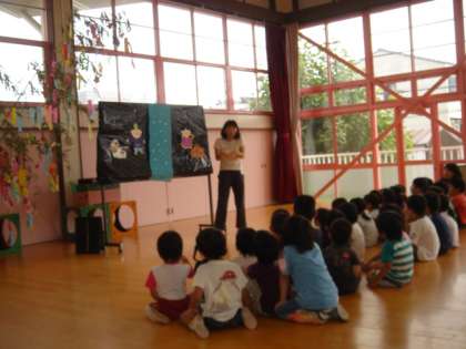 織姫と彦星のお話を聞いたり,ボランティアの方による紙芝居やぺープサートなどを聞いたりして,楽しみました。