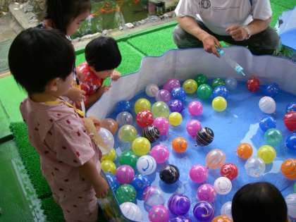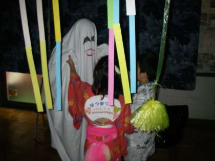 お化けに出会うまでに,怖いと言って逃げて帰る子どももたくさんいましたが,勇気を出してお化けのところまでたどりついた子どもたちは,お化けと握手をしたり,お化けに抱擁してもらっていました。「ちょっとドキドキしたけど,おもしろかったわ」
