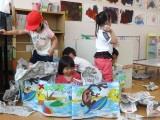 さくら組は,部屋で新聞紙で遊びました。