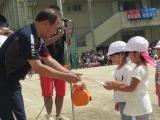 ことしも西院中学校の運動会に参加してきました。妙覚保育園,向上社保育園と西院幼稚園の園児チームと中学生青団,赤団,PTAの4チームで競いました。今年も園児たちはたくさんのハンデをもらって(ゴール杯はだんとつで低く,人数も多く)勝利してきました。