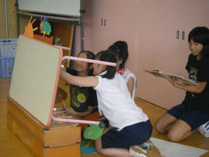 中学生は,子どもたちのために,≪はらぺこあおむし≫のペープサートをしてくれました。カラフルな色合いで,絵本を見ながら子どもたちを楽しませようと,一生懸命つくってくれたのが,伝わってきます。