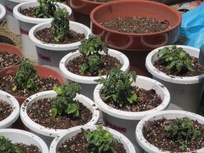 さくら組(4歳児)は一人一鉢,トマトを植えました。