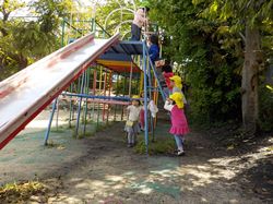 たんぽぽ組(年少児)の子どもたちは,積み木で電車つくったり砂場でごちそうつくったりして少しずつしたい遊びを見つけて遊び始めています。園庭に行くと滑り台が大人気です。滑り台の上から見える先生に「おーい」と言ったり,こいのぼりを見たりして楽しんでいます。繰り返し何度もすることを楽しんでいるたんぽぽ組の子どもたちです。