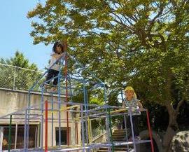 とってもいいお天気の中,年少たんぽぽ組のみんなは今日もお外でたくさん遊びました。「先生ー見てー!こんな高いところまで登れるよ」とジャングルジムの上から手を振ったり,水を運んで流したり,バシャバシャと水の中に入ったりなどして,好きな遊びを存分に楽しんでいます。いっぱい遊んだあとは,お弁当!!「おいしい!」「嬉しい!」と言いながら楽しい雰囲気の中で食べました。