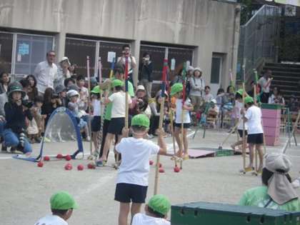 年長組のゆり組の子どもたち。竹馬や竹遊びも楽しみました。
