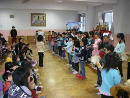 4歳児は「おもちゃのチャチャチャ」を演奏しています。大きな拍手をもらいました。