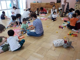 今日は3歳児が親子で七夕の笹飾りをつくりました。はさみやのり,クレパスなどのお道具箱の道具を使って,お家の方と一緒に楽しんだり,工夫したり,がんばったりしてつくっていました。