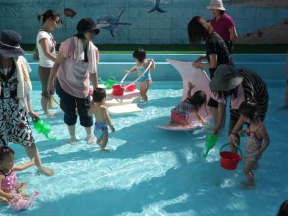 今日のプールは浅くて遊びやすかったようです。