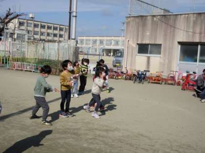 今日は節分です。今年はみんなの心の中にいる鬼や病気を運んでくる鬼をやっつけるため,各クラス時間を分けて豆まきをしました。