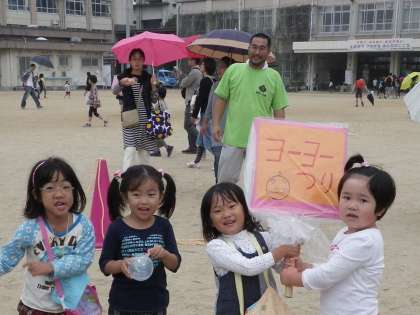 親と子の秋の集いでは、PTAとサンサンパパが協力して、楽しい活動ができました。かわいい呼びかけをしてくれています。