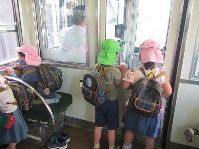 さくら組とゆり組で,緑の広場に出かけました。前日からとても楽しみにしていた子どもたちは,電車の景色も楽しみながら緑の広場まで向かいました。