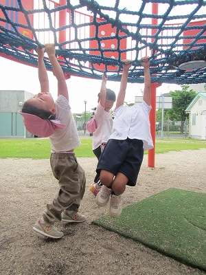 広場についてからは,遊具で思い切り遊んだり,先生や友達と一緒にだるまさんがころんだをしたり,しっぽ取りをしたり…時間の限り,のびのびと遊びました。