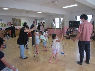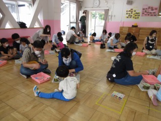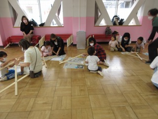 おうちの人と世界に一つだけの遊び道具を作ることができて,子どもたちもとても嬉しそうでした。これから幼稚園でそれを使って遊ぶのが楽しみですね。