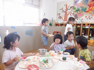 レストランごっこやピックニックごっこなど、たんぽぽ組の子どもたちはごっこ遊びが大好きです。お部屋では、毎日楽しい“ごっこ遊び”が繰り広げられています。