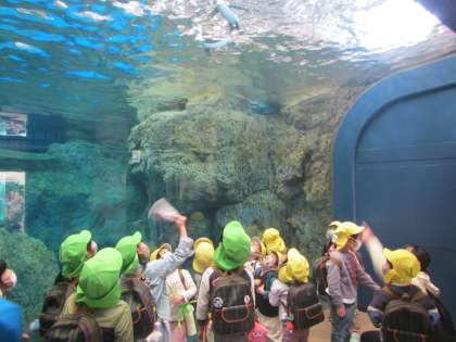 暖かい日差しの中、全学年で京都水族館へお別れ遠足に行きました。