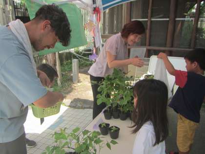伏見板橋幼稚園では、『ウェルカムデー』としてお隣りの伏見板橋小学校の先生方に保育を見ていただく機会を設けています。子どもたちの遊びや生活の様子から、幼児期の育ちが小学校教育へとつながっていることを身近に感じていただきたいと思っています。7月4日から6日までの間、低学年〜高学年までの先生方が本当にたくさん来てくださいました。小学校の先生方に幼児の育ちを知っていただき、また、私たちも小学校教育を知り、互いに子どもたちの育ちに活かしていこうと考えています。
